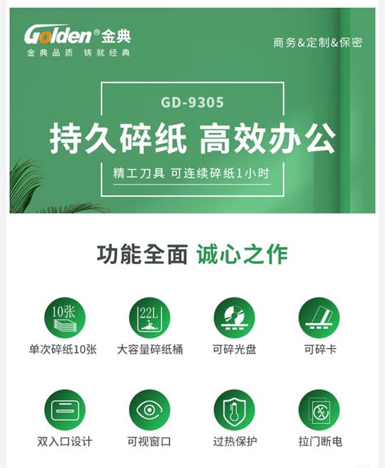 金典 GOLDEN GD-9305碎紙機,10張,60分鐘;